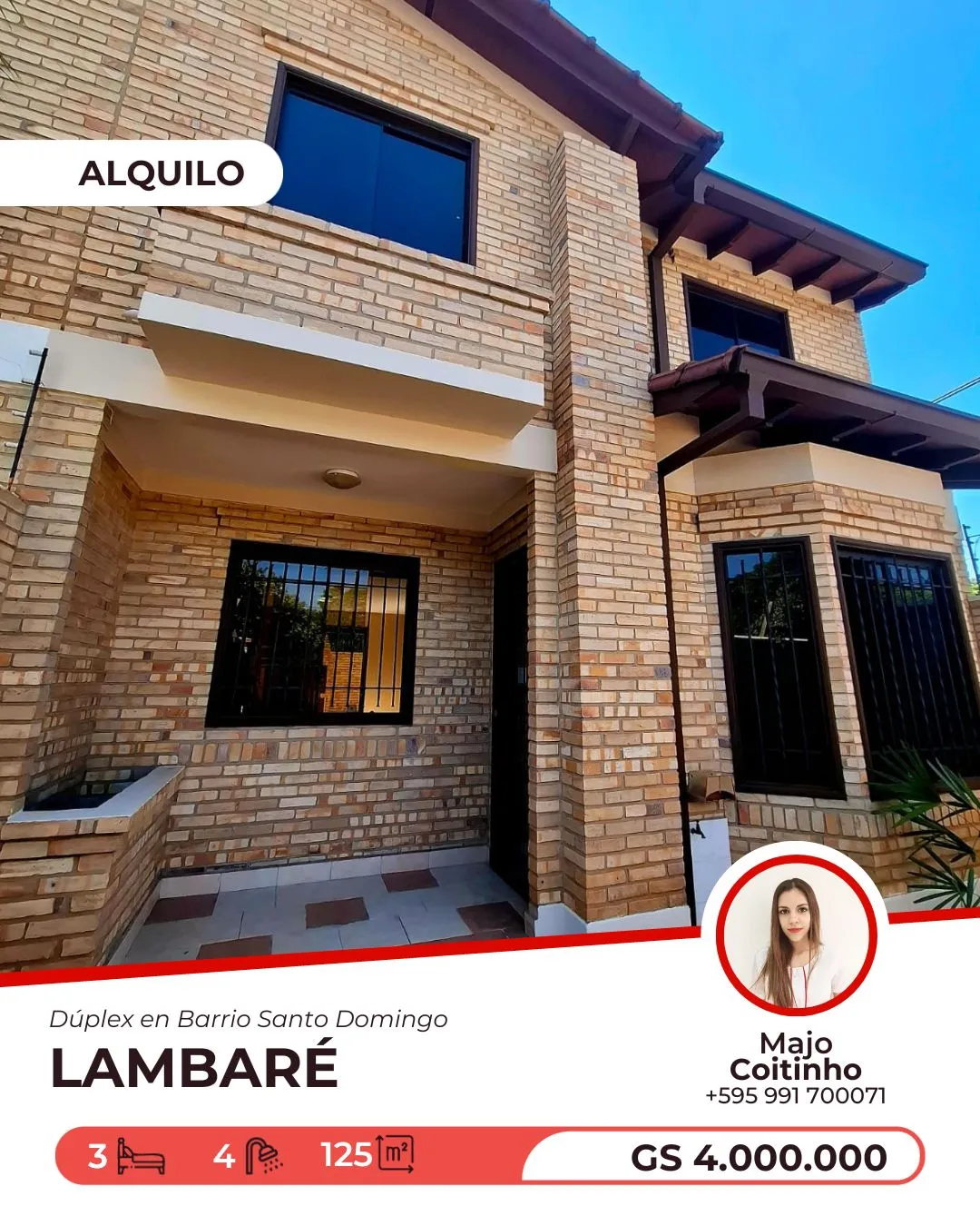 Opción 1: Enfocada en la comodidad y el estilo de vida: Descubre este encantador dúplex en alquiler, ubicado en el tranquilo y familiar barrio Santo Domingo de Lambaré. Disfruta de la comodidad de sus 3 ambientes, distribuidos inteligentemente en una superficie de terreno de 125 m2. Este dúplex es perfecto para quienes buscan un hogar funcional y con espacio para disfrutar de la vida en familia o con amigos. Con 125 m2 a tu disposición, podrás crear el hogar de tus sueños en una ubicación privilegiada de Lambaré. Si estás buscando otras opciones de alquiler o compra en Paraguay, no dudes en explorar Homy.com.py, la plataforma ideal para encontrar el inmueble perfecto para ti. Opción 2: Enfocada en la ubicación y el potencial: ¡Oportunidad única de alquiler en Lambaré! Te presentamos este dúplex de 3 ambientes en el codiciado barrio Santo Domingo. Con una superficie de terreno de 125 m2, este inmueble ofrece un excelente potencial para personalizarlo a tu gusto y crear un espacio que refleje tu estilo. Este dúplex de 125 m2 es una inversión en tu calidad de vida y tu futuro. Si buscas un hogar con potencial y en una ubicación estratégica, esta es tu oportunidad. Además, recuerda que en Homy.com.py puedes encontrar una amplia variedad de propiedades en Paraguay para comparar y elegir la que mejor se adapte a tus necesidades.