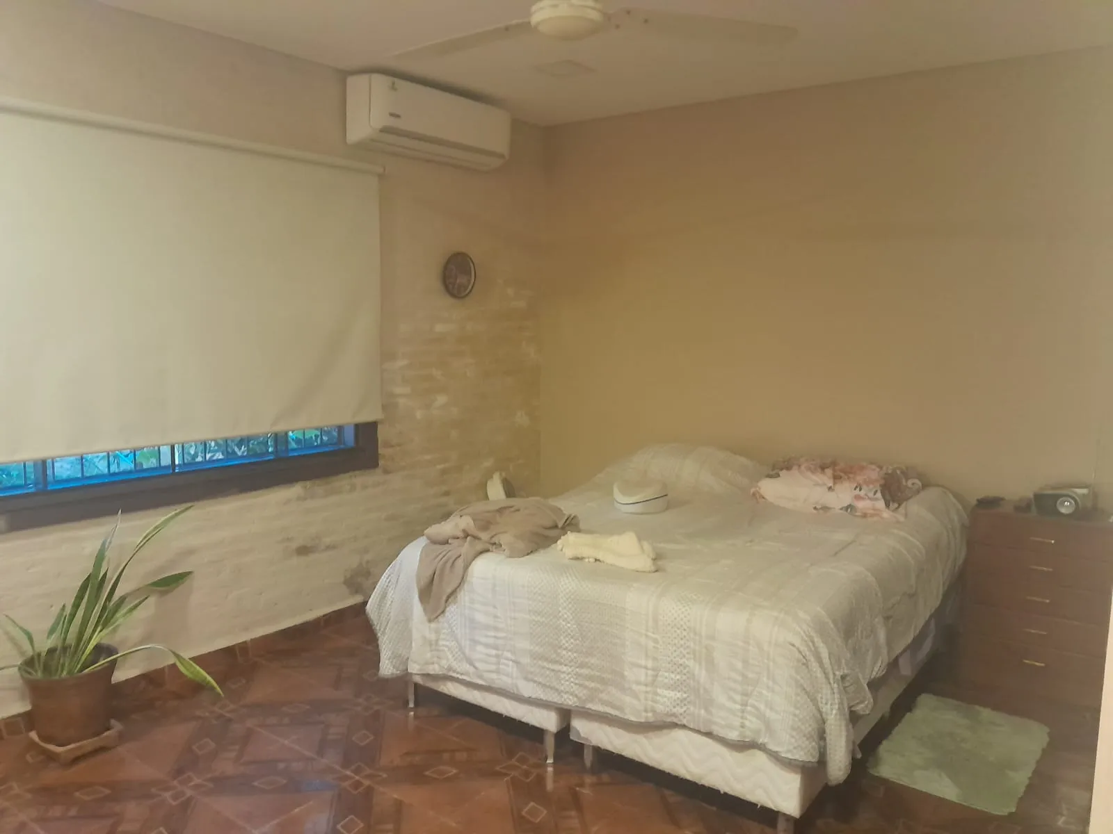 A 6-7 cuadras antes de llegar al colegio Sek,es un lugar alto y mucha sombra,a tres cuadras de carretera López. Sala, Cocina amoblada, Comedor. Jardín delantero. Jacuzzi, quincho con parrilla, galería, Cochera abierta, cuatro aires ac.,dormitorio dos en suite, altillo. Mucho jardín, Cochera, ventiladores de techo y A/A. Precio de venta:750.000.000 Gs Medidas de la propiedad: 14x35 La dueña deja varios muebles de la sala y cocina.
